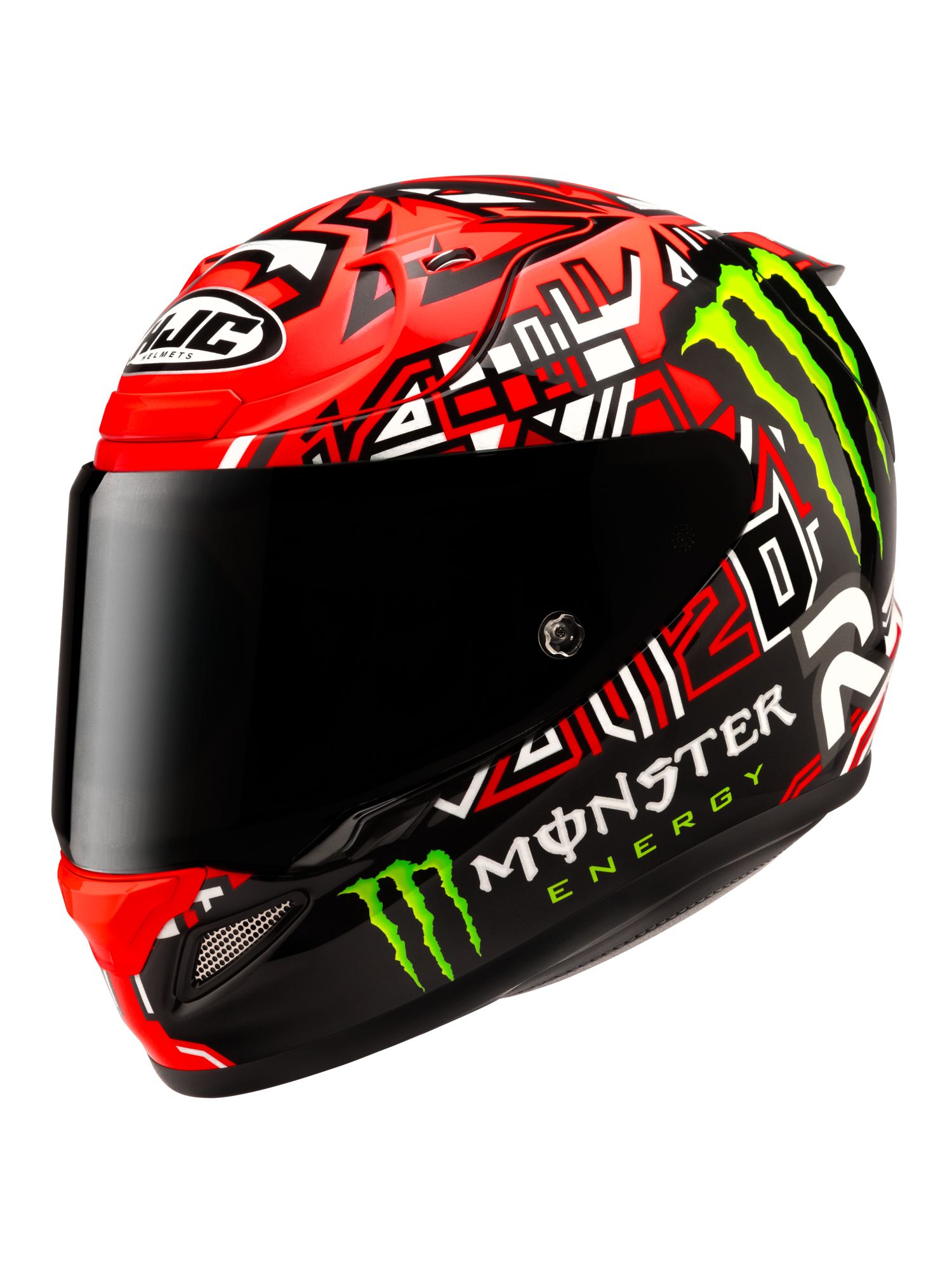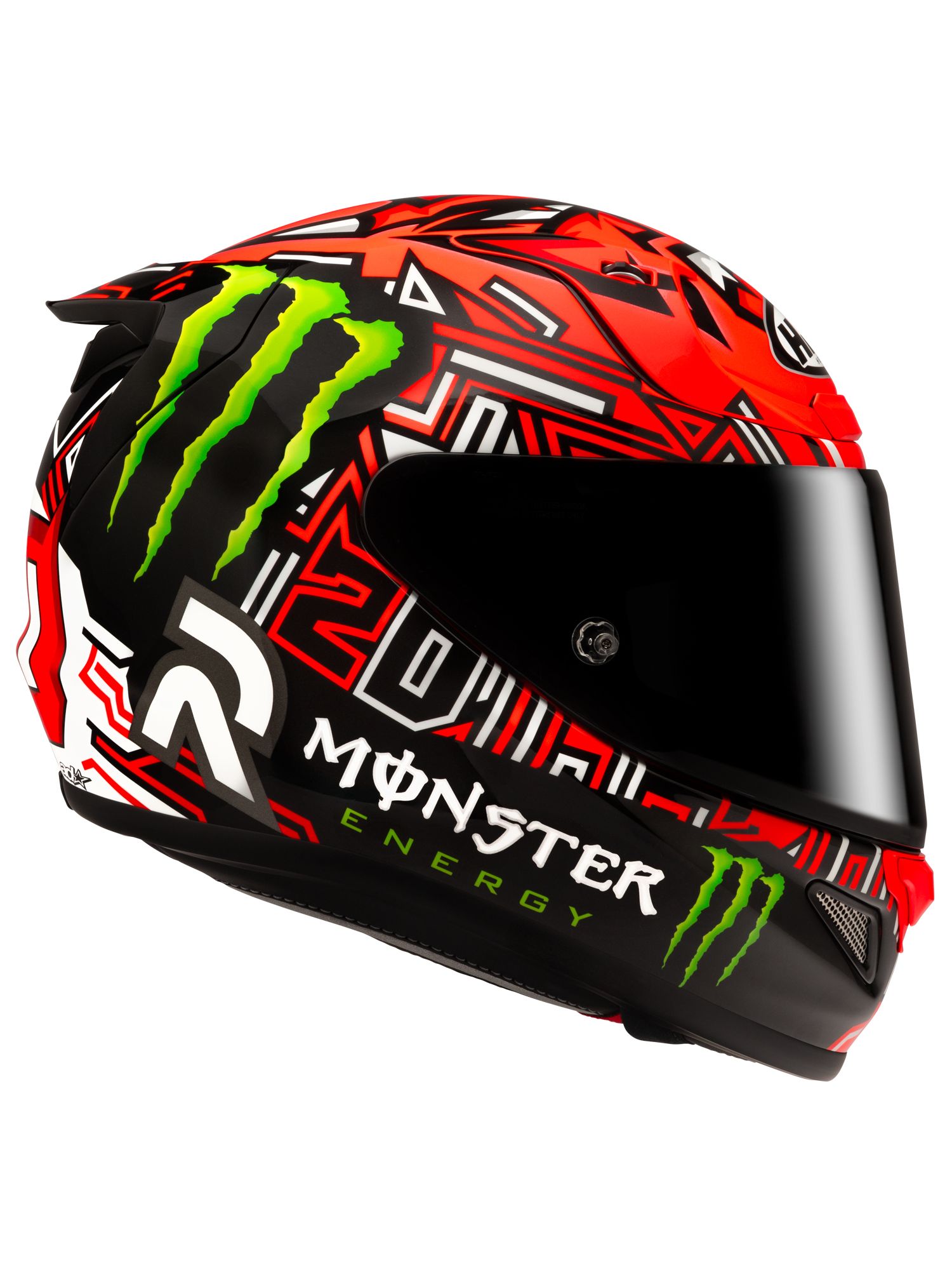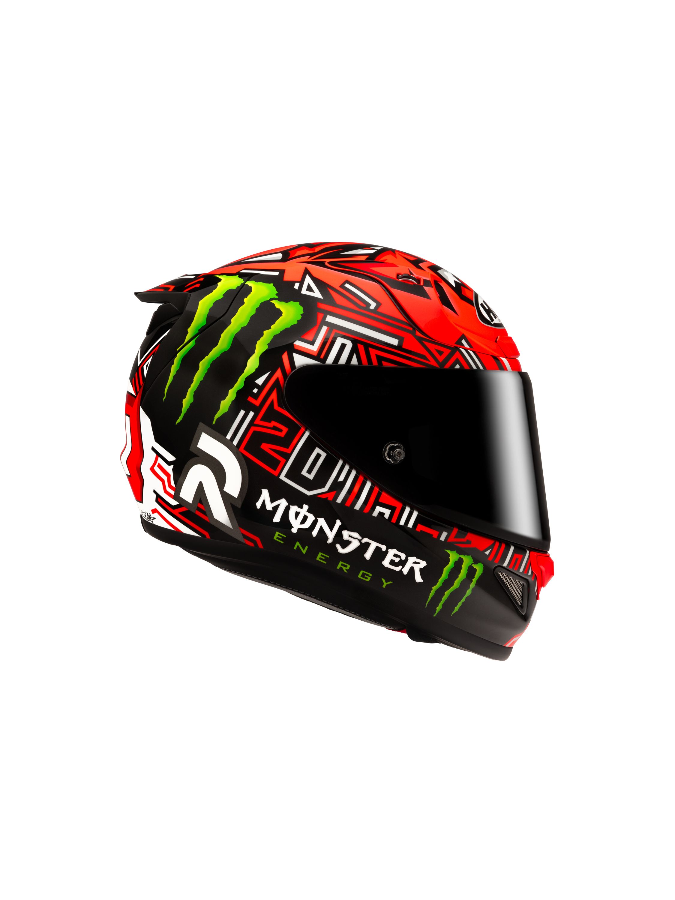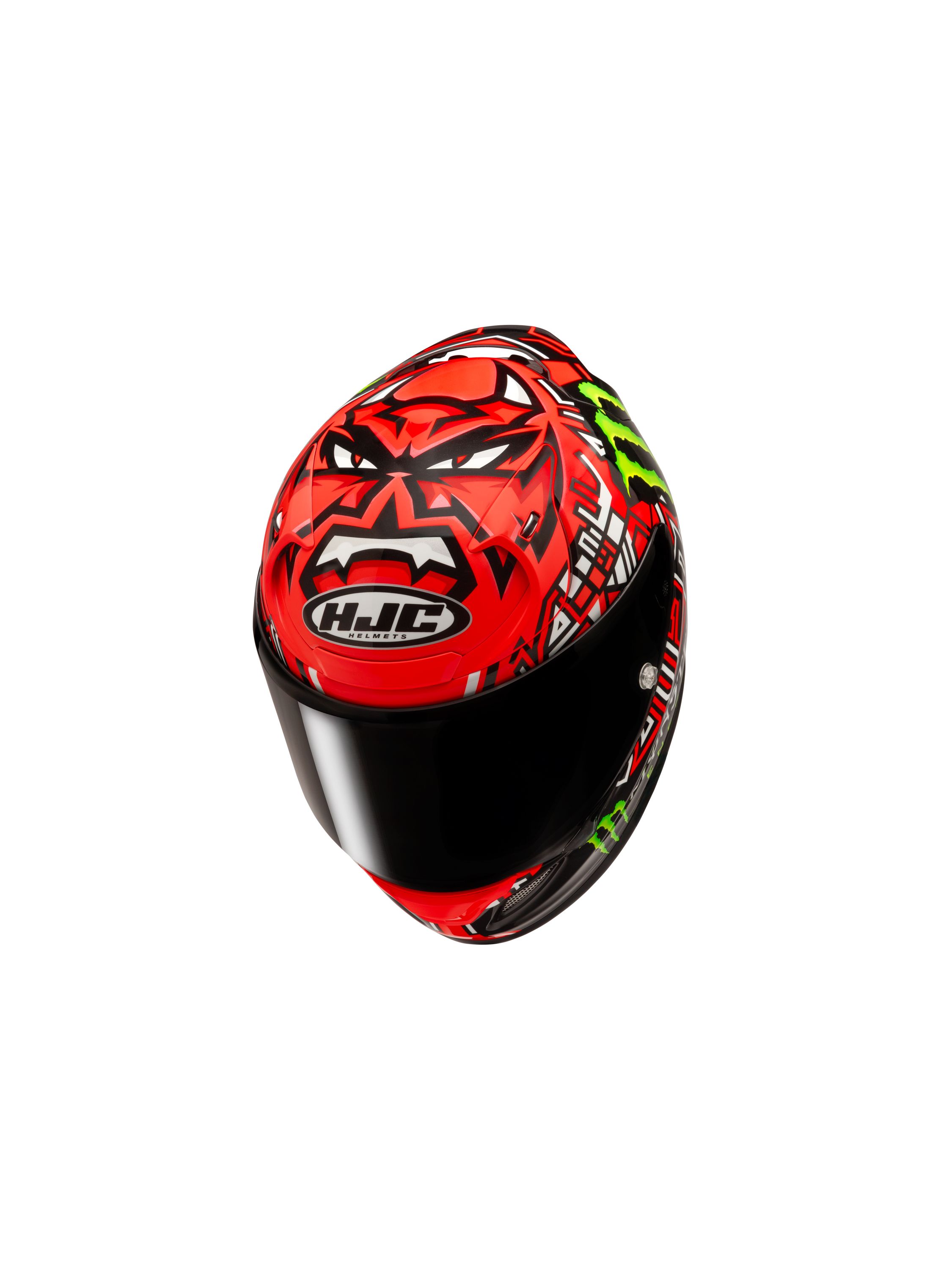 2021年MotoGP世界チャンピオンに輝いたファビオ・クアルタラロの、2025年レプリカモデル。 赤と黒を基調にした配色にモンスターエナジーロゴが映えるデザイン。スポーツライディング時に正面から見える、クアルタラロの愛称『エル・ディアブロ(悪魔)』を彷彿とさせる頭頂部のグラフィックが特徴的なヘルメットです。