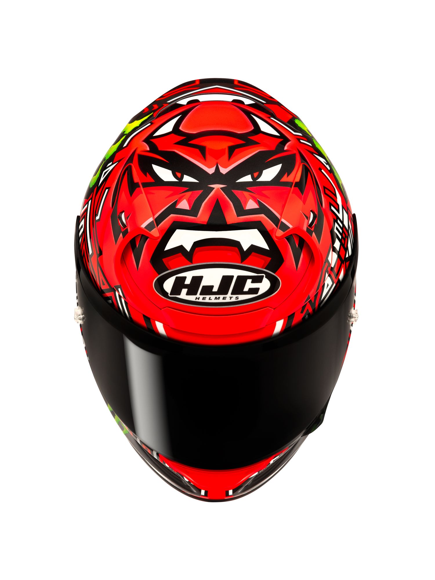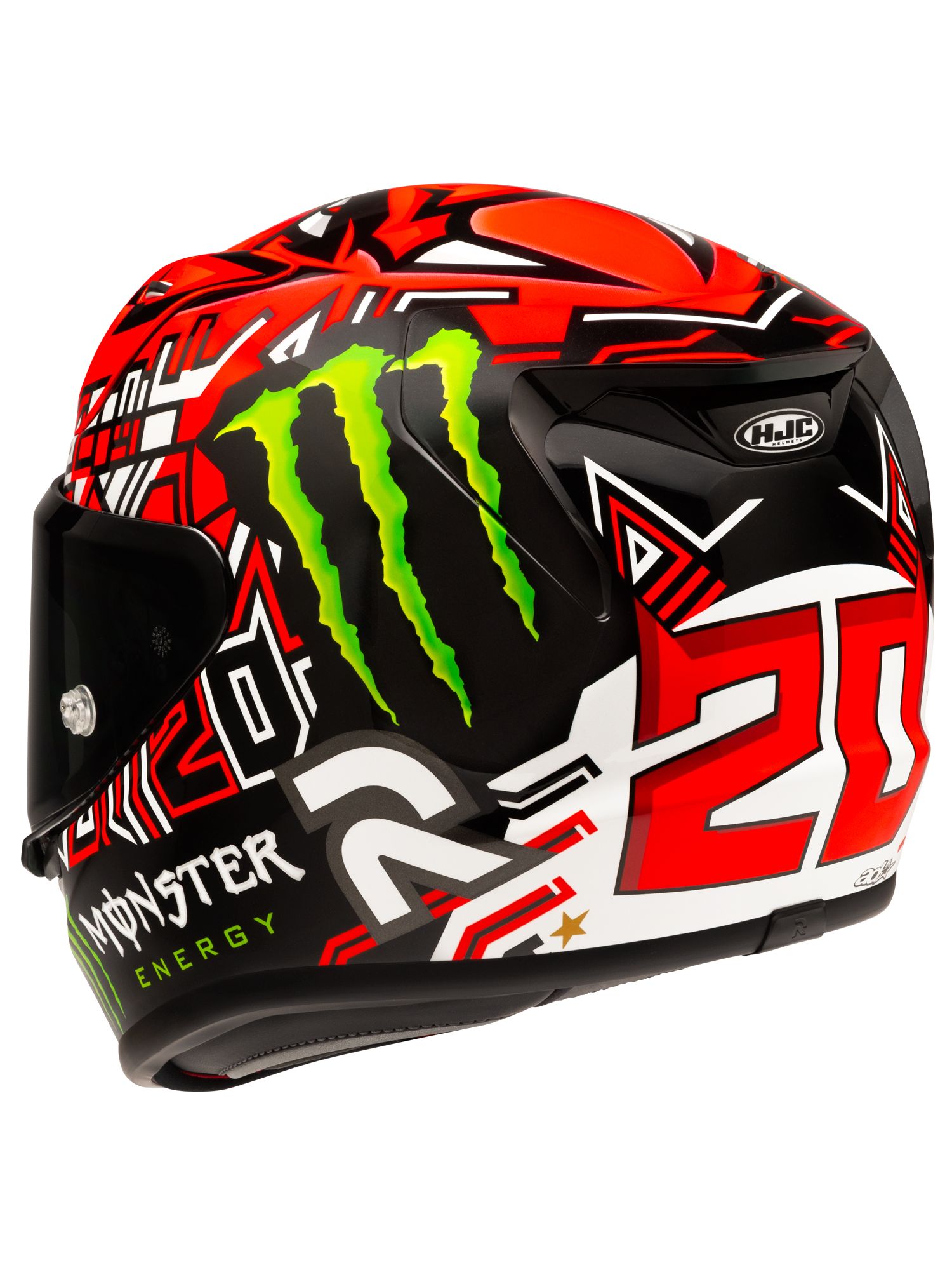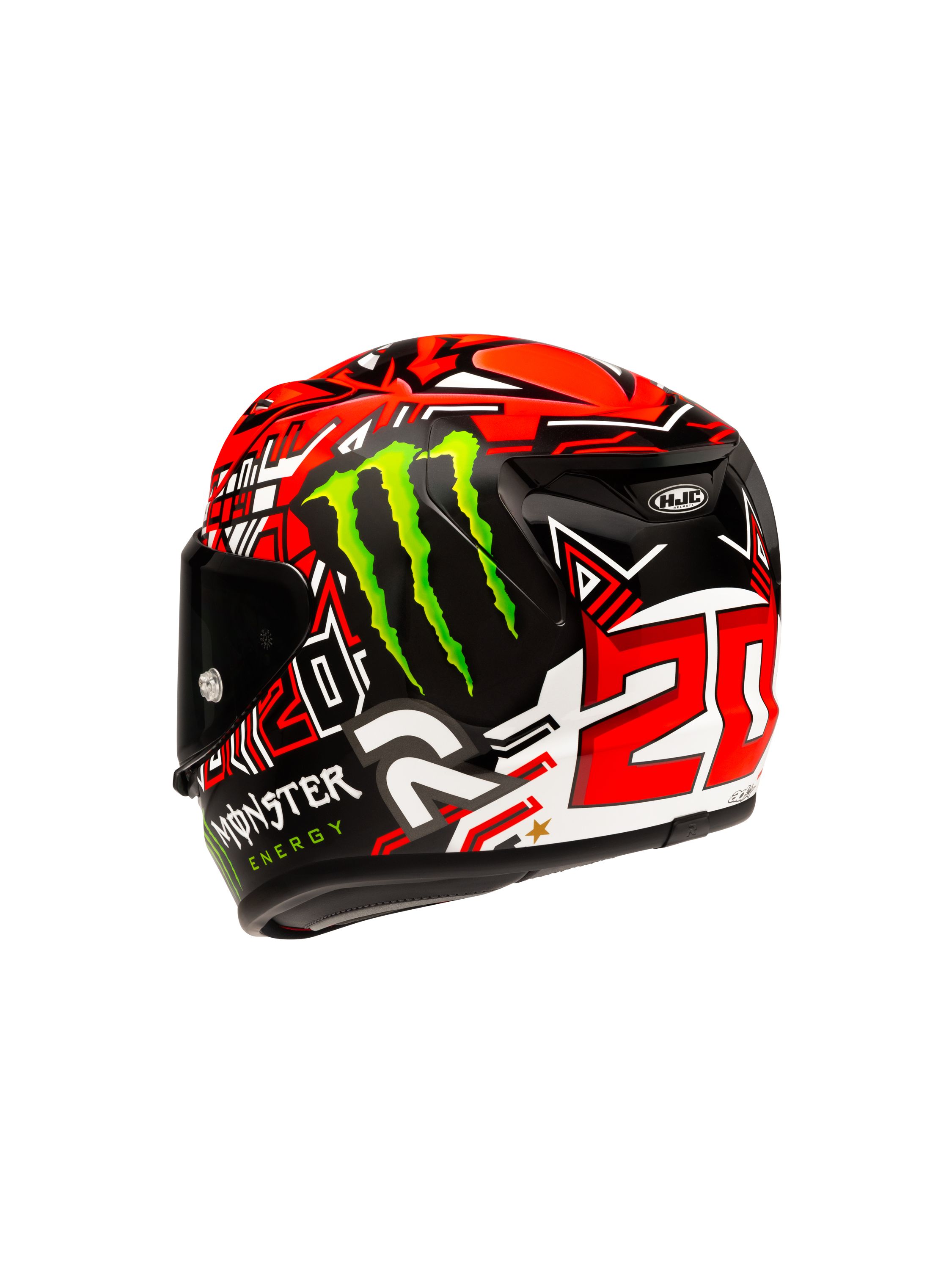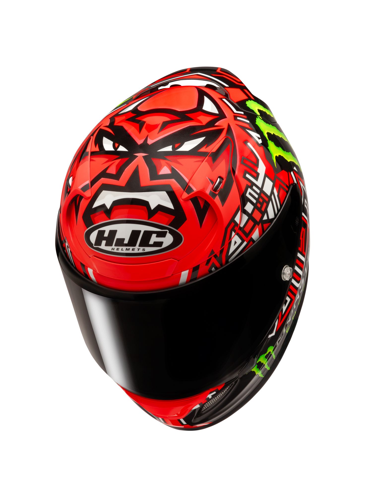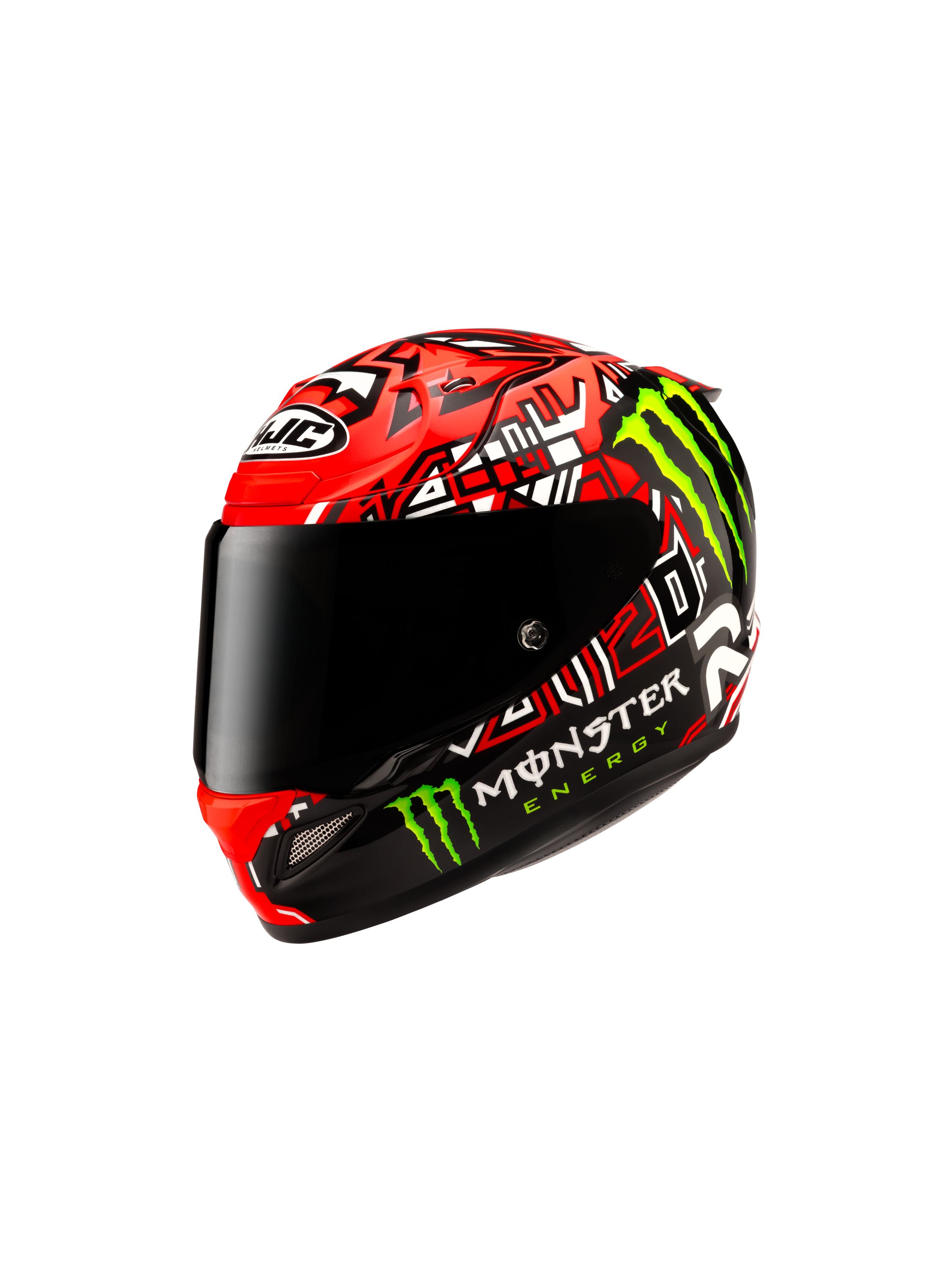 2021年MotoGP世界チャンピオンに輝いたファビオ・クアルタラロの、2025年レプリカモデル。 赤と黒を基調にした配色にモンスターエナジーロゴが映えるデザイン。スポーツライディング時に正面から見える、クアルタラロの愛称『エル・ディアブロ(悪魔)』を彷彿とさせる頭頂部のグラフィックが特徴的なヘルメットです。