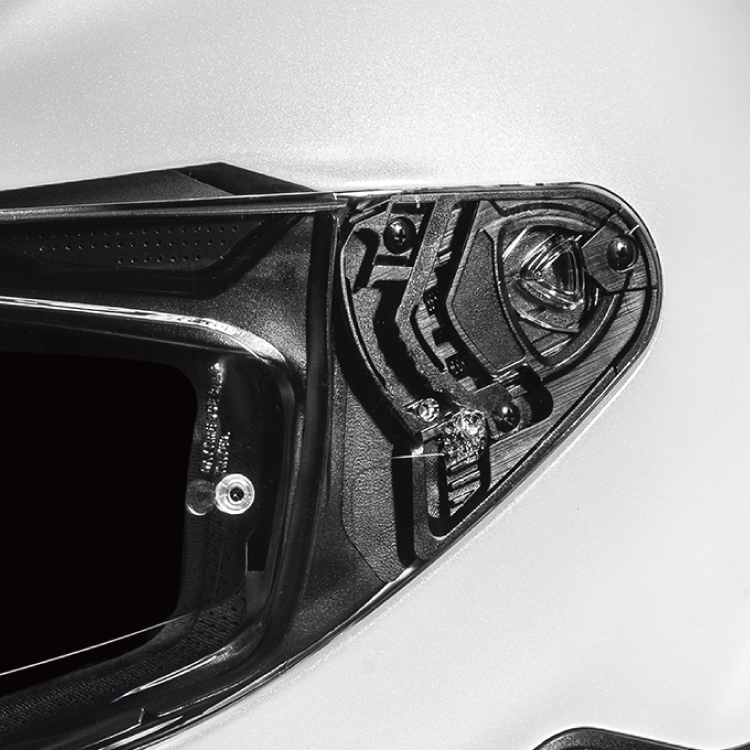 グローブ装着時でもスムーズなシールド開閉操作を可能にするシールドロック機構を採用。