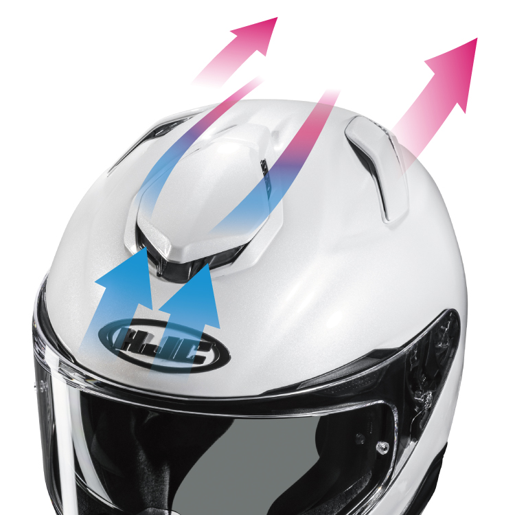前頭部のインテークから後頭部のアウトレットにかけて、気流を生み出すベンチレーションシステムを装備し、効率よくヘルメット内部の熱気を排出します。