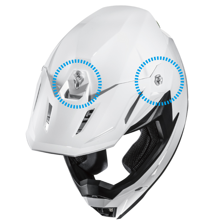 飛来してくる泥・小石や日差しを防ぐためのバイザーは、3ヶ所に配置されたスクリューにて角度を調整できます。