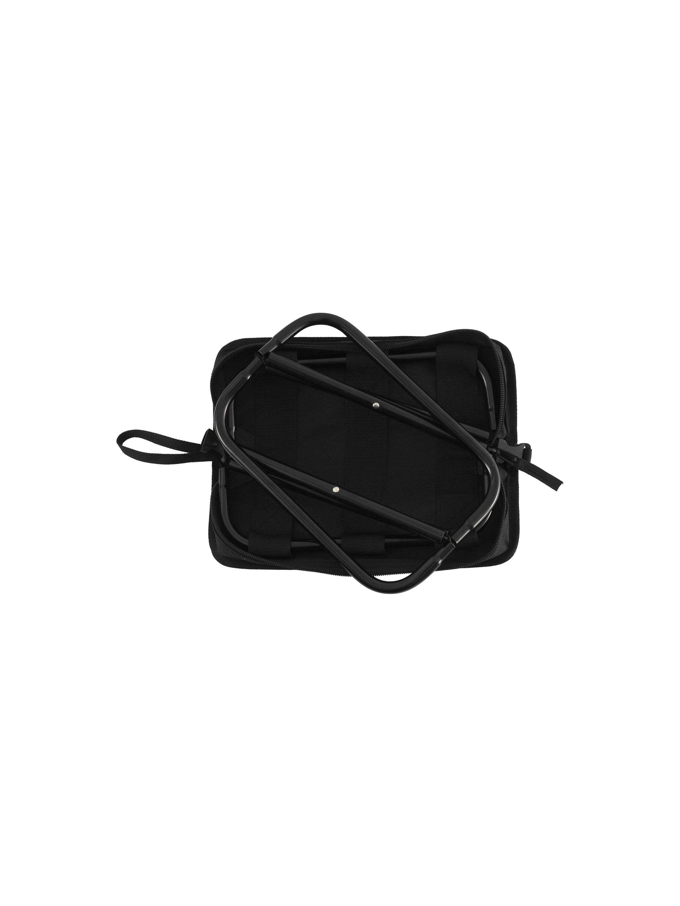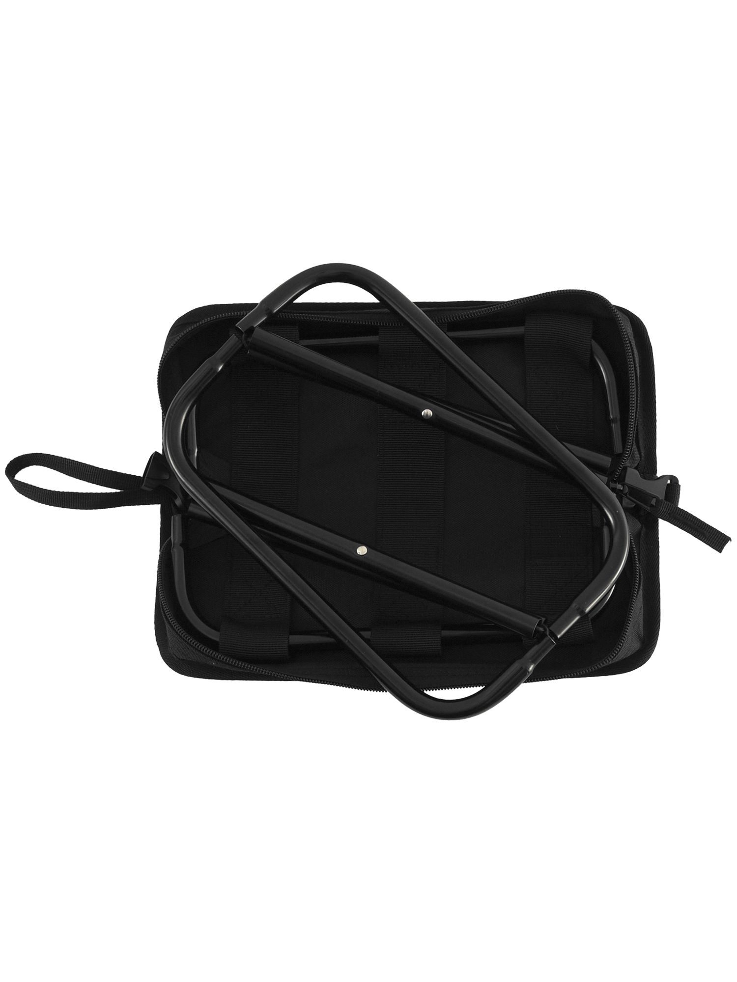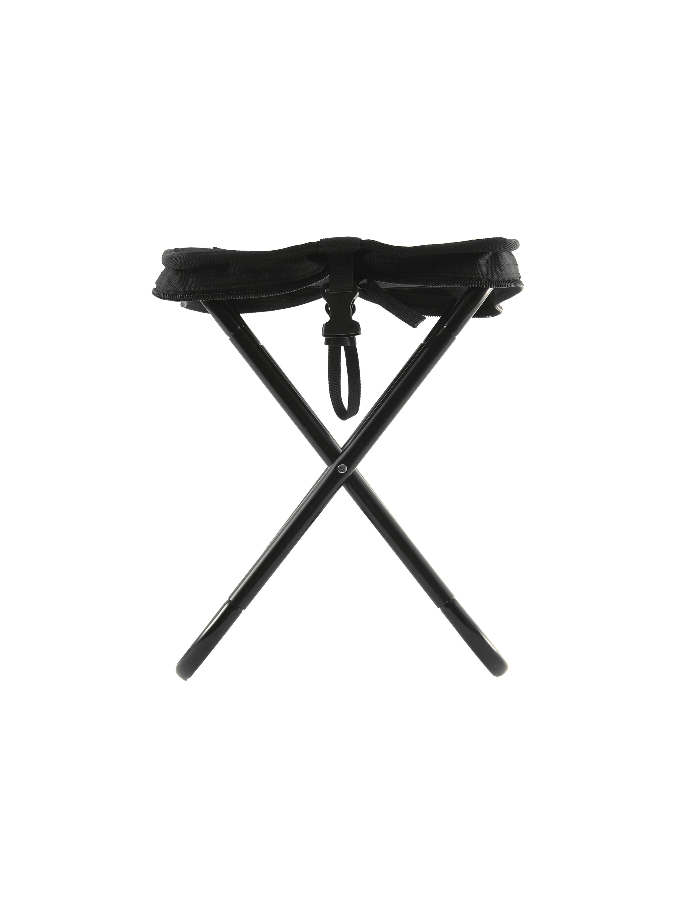 座面が収納袋になるコンパクトな折り畳み式のアウトドアチェア。組み立ても簡単で、座りたい時にすぐに展開可能。