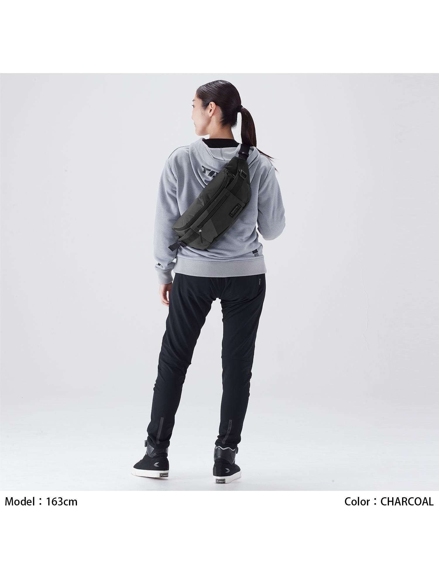 貴重品やペットボトル等を携行するのに便利な、5Lサイズのウエストバッグ。