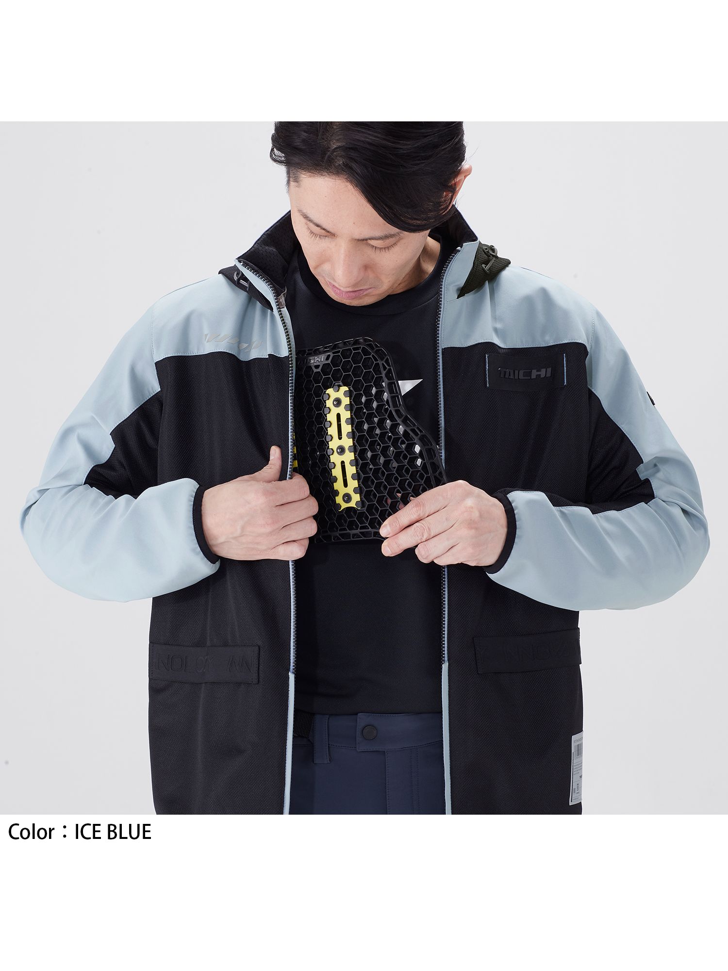 肩と肘にCE規格LV.1のプロテクターを内蔵。強度を保持しつつも、多数の通気孔による優れた通気性と柔軟性を実現。