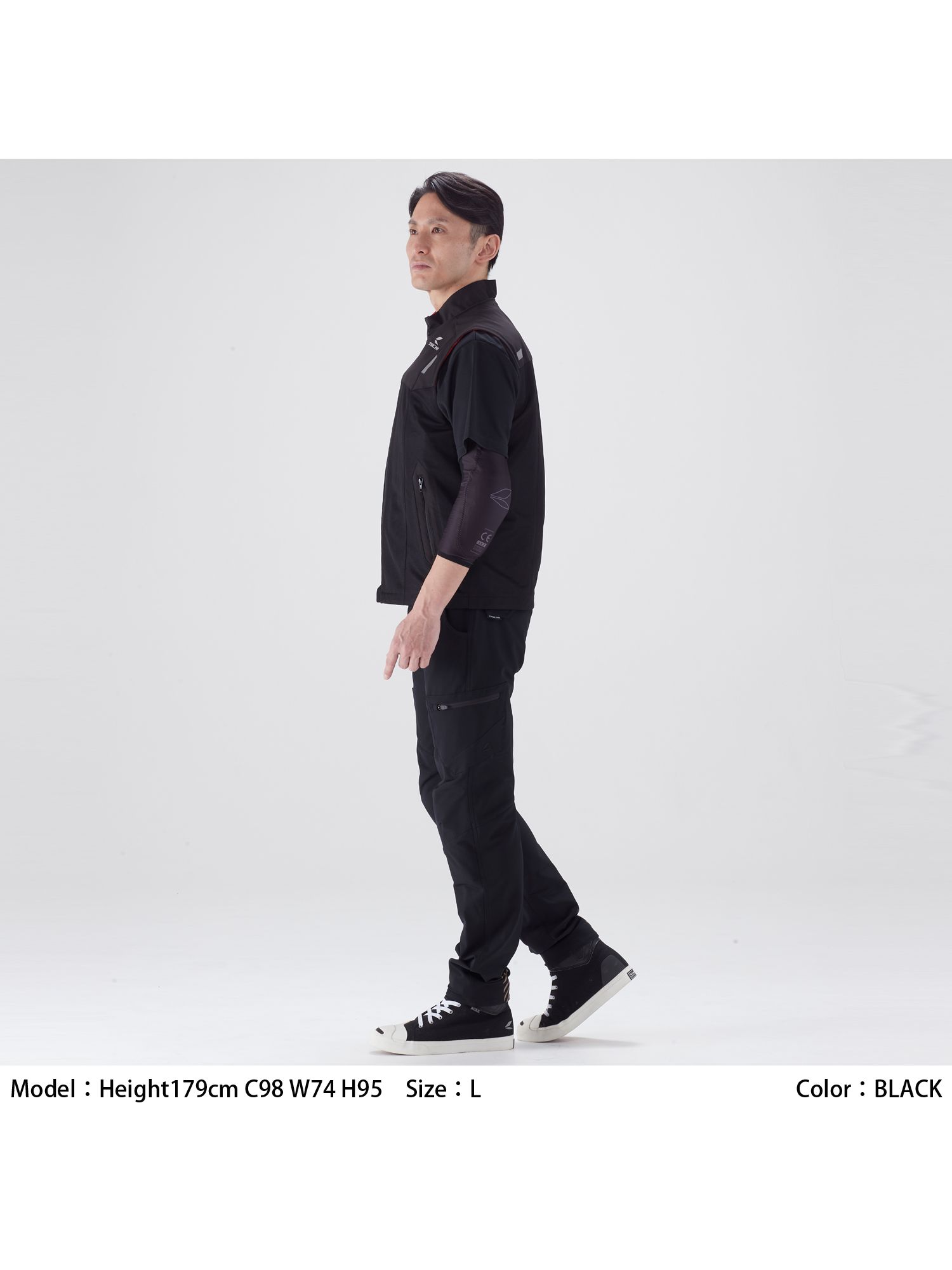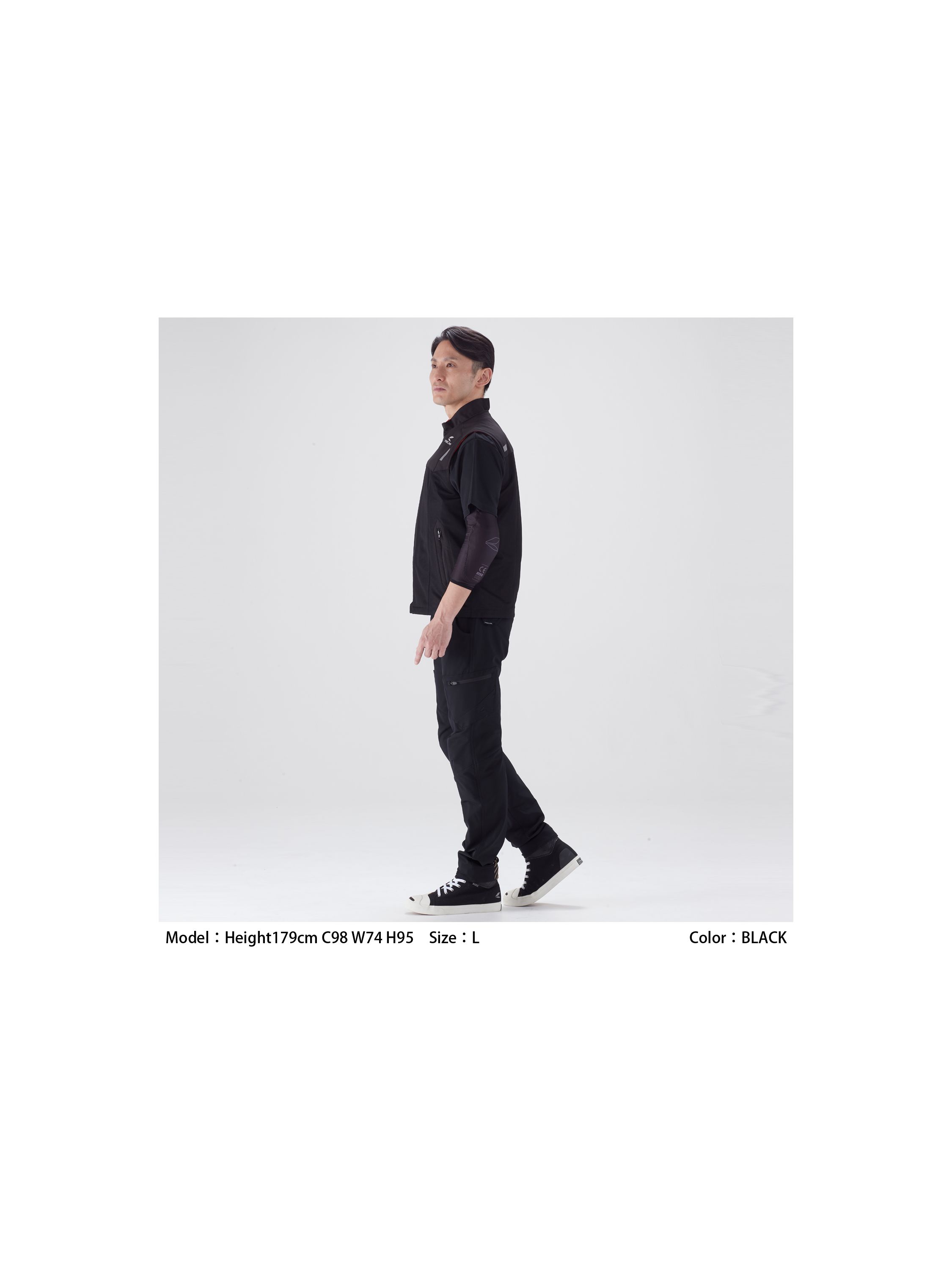 プロテクター機能の無いジャケットやお手持ちのアウターの下に着用することで、手軽に胸部と背面プロテクターを身に着けることが可能です。
