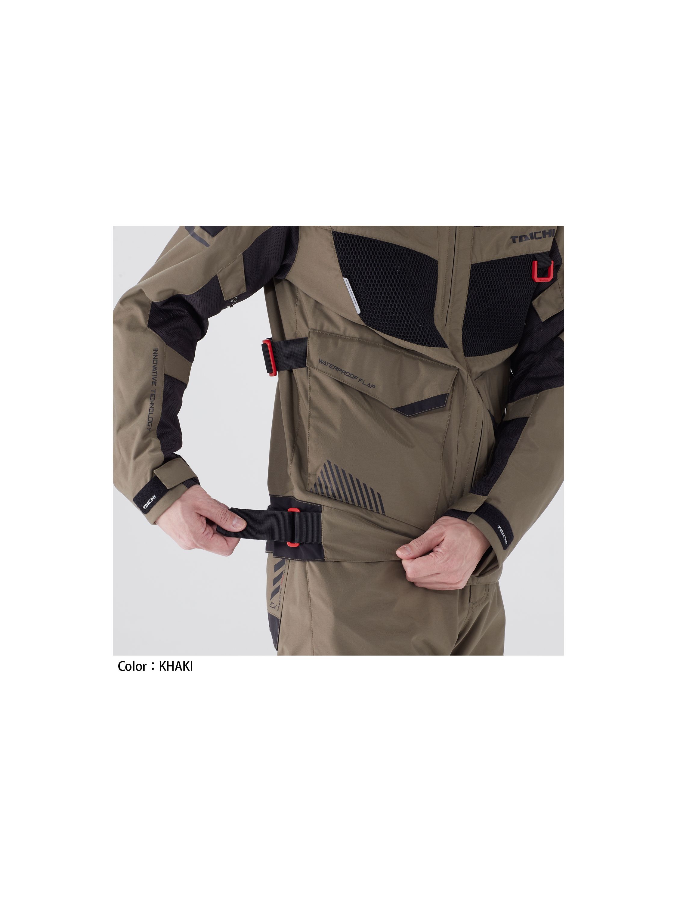 腕に2カ所と背中や腰の左右に、調整用フラップとアジャスターを配置。 ジャケットを体にフィットさせることで走行風によるバタつきを軽減します。