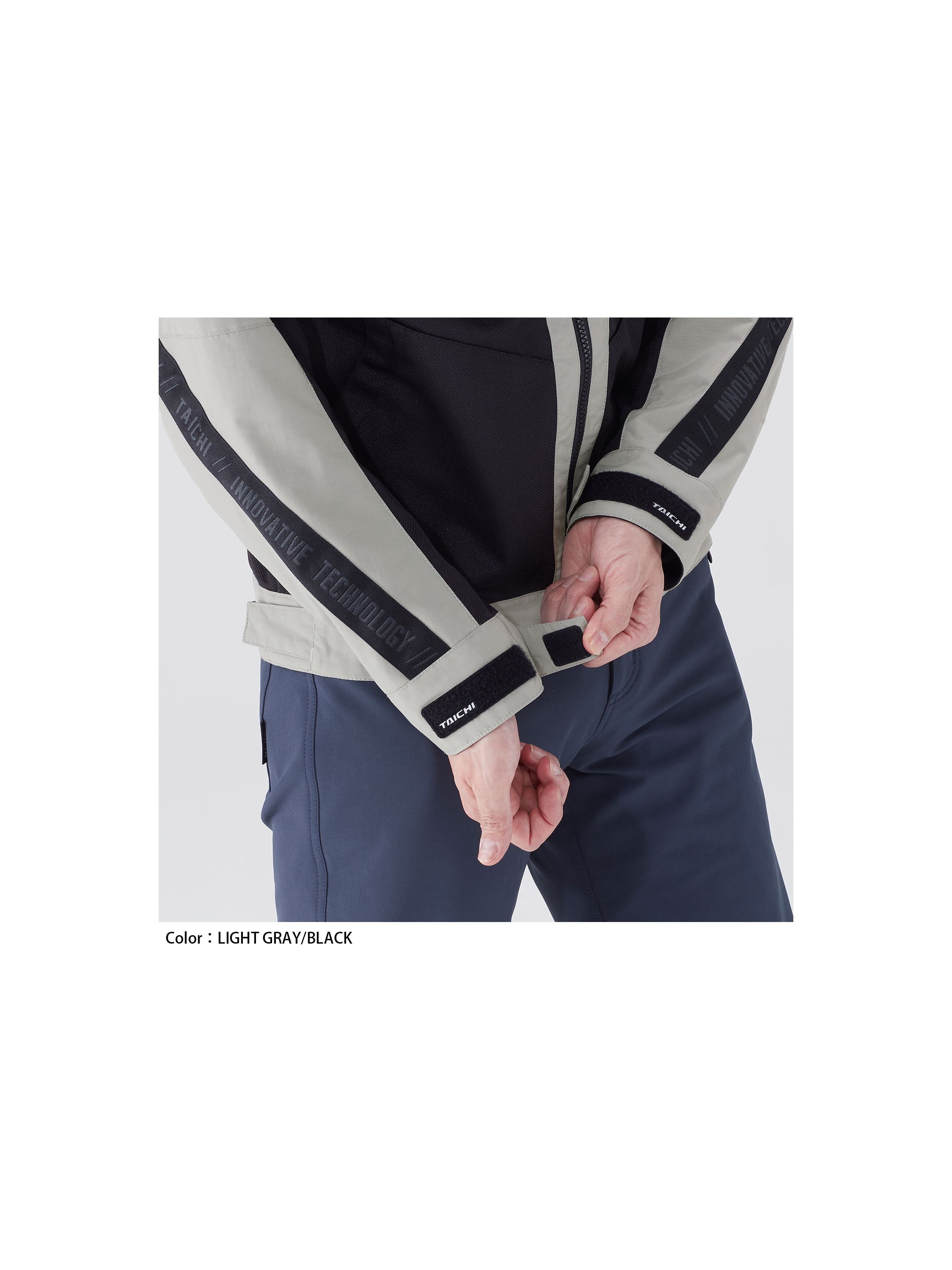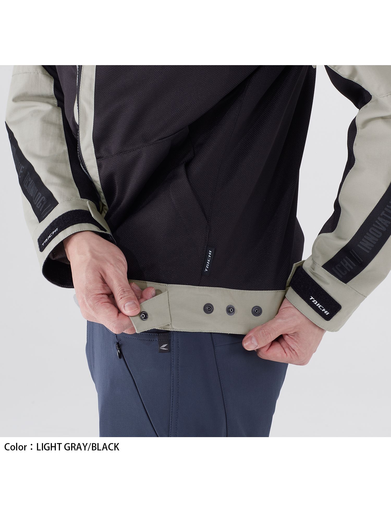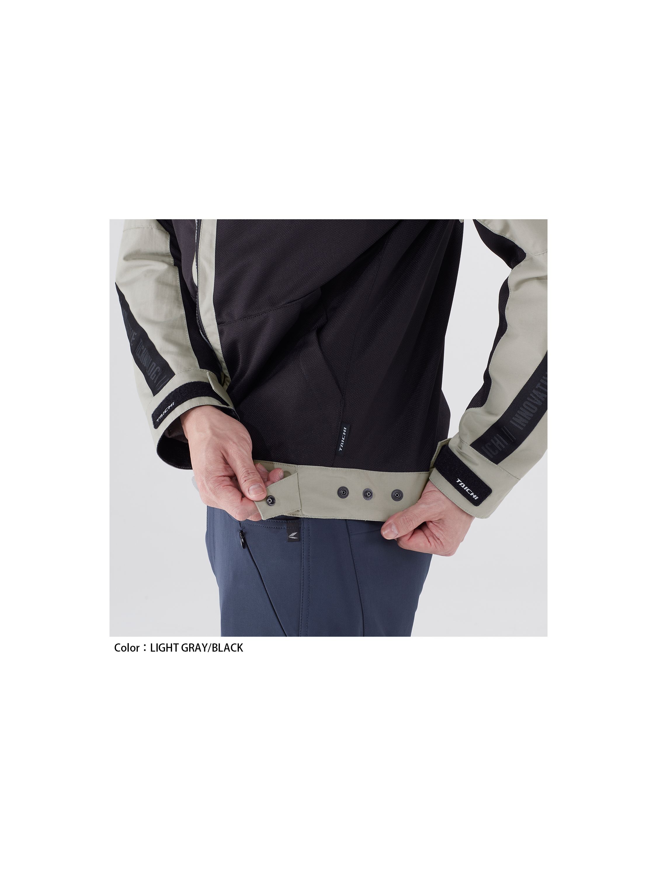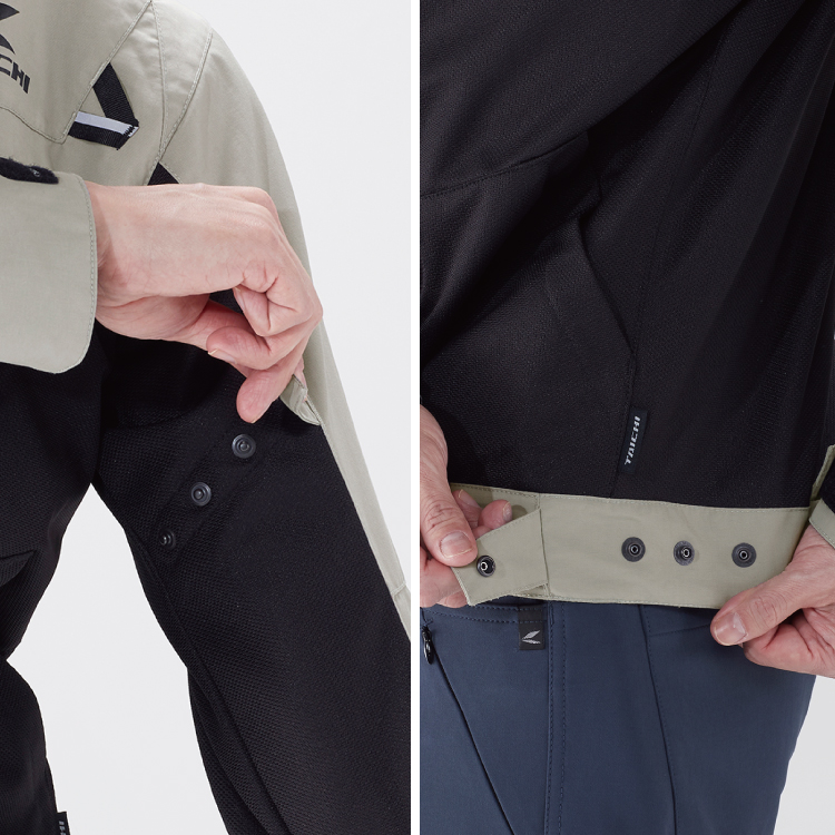 両腕と腰の左右には走行風によるバタつきを抑える調整用ボタンを配置。