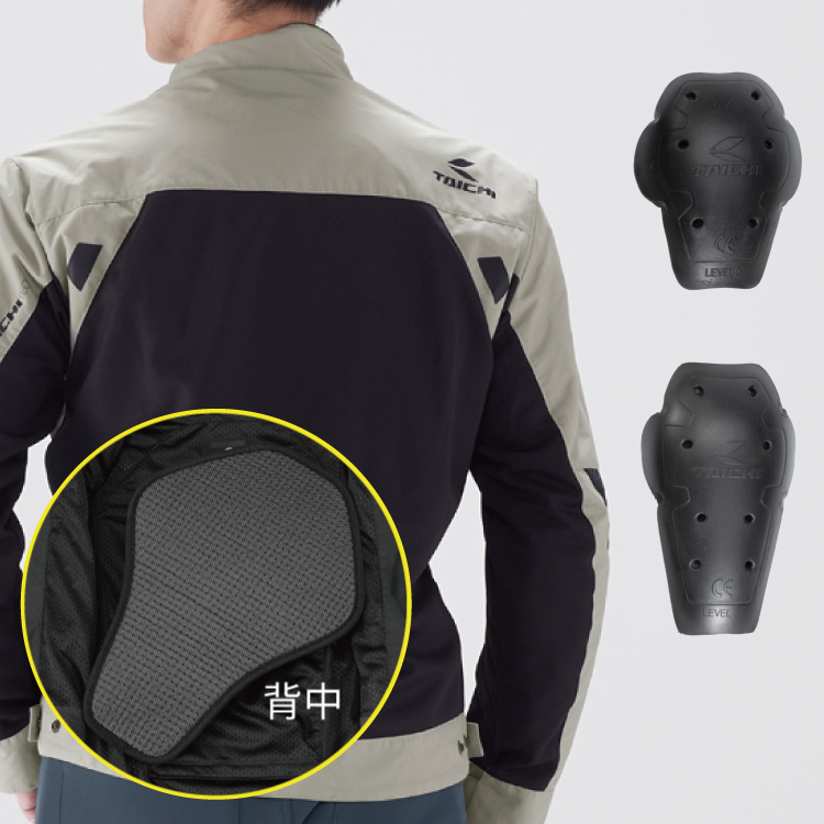 背中のプロテクターは TRV044 | TAICHI CE(LV2)バックプロテクター と入れ替え可能です。