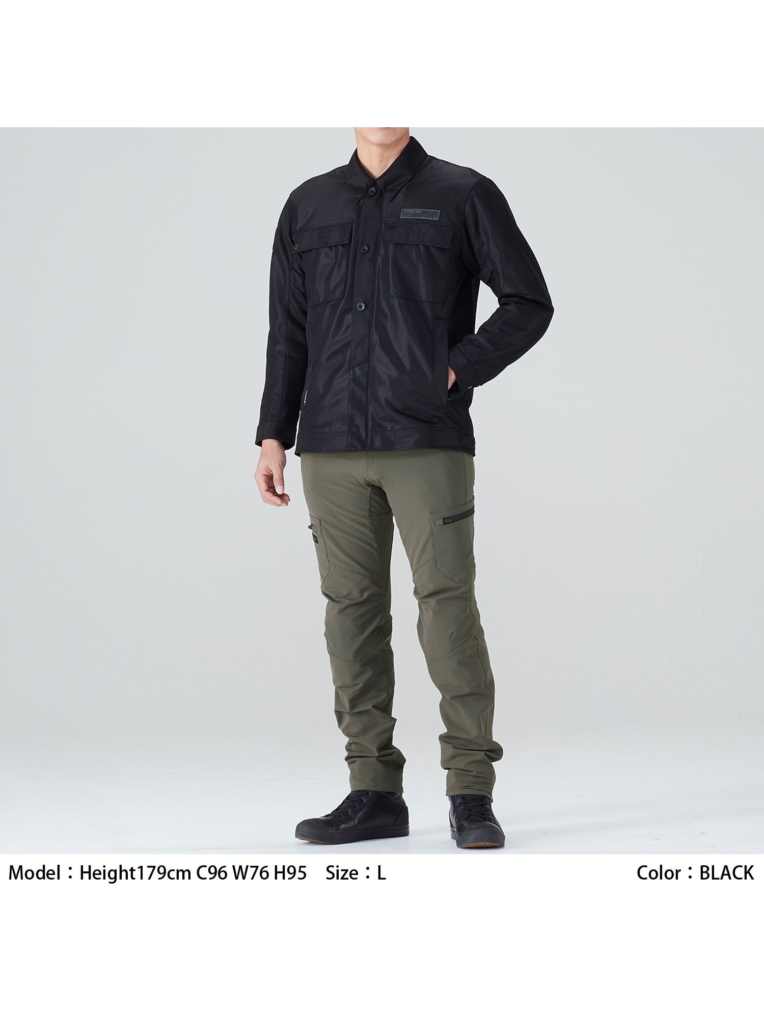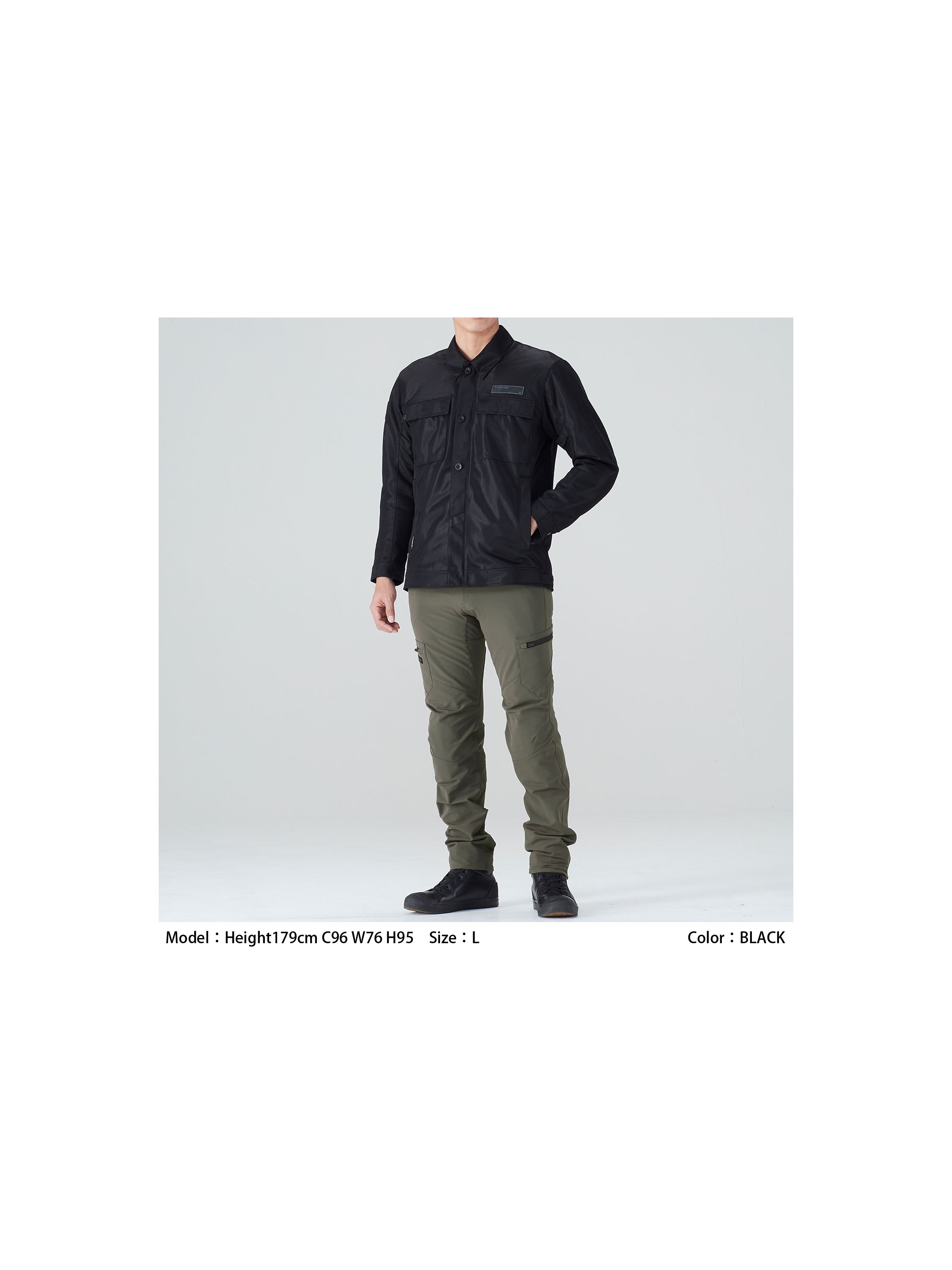 メッシュ生地を全面に採用し高い通気性を実現した、クラシックなワークシャツスタイルのエアスルージャケット。