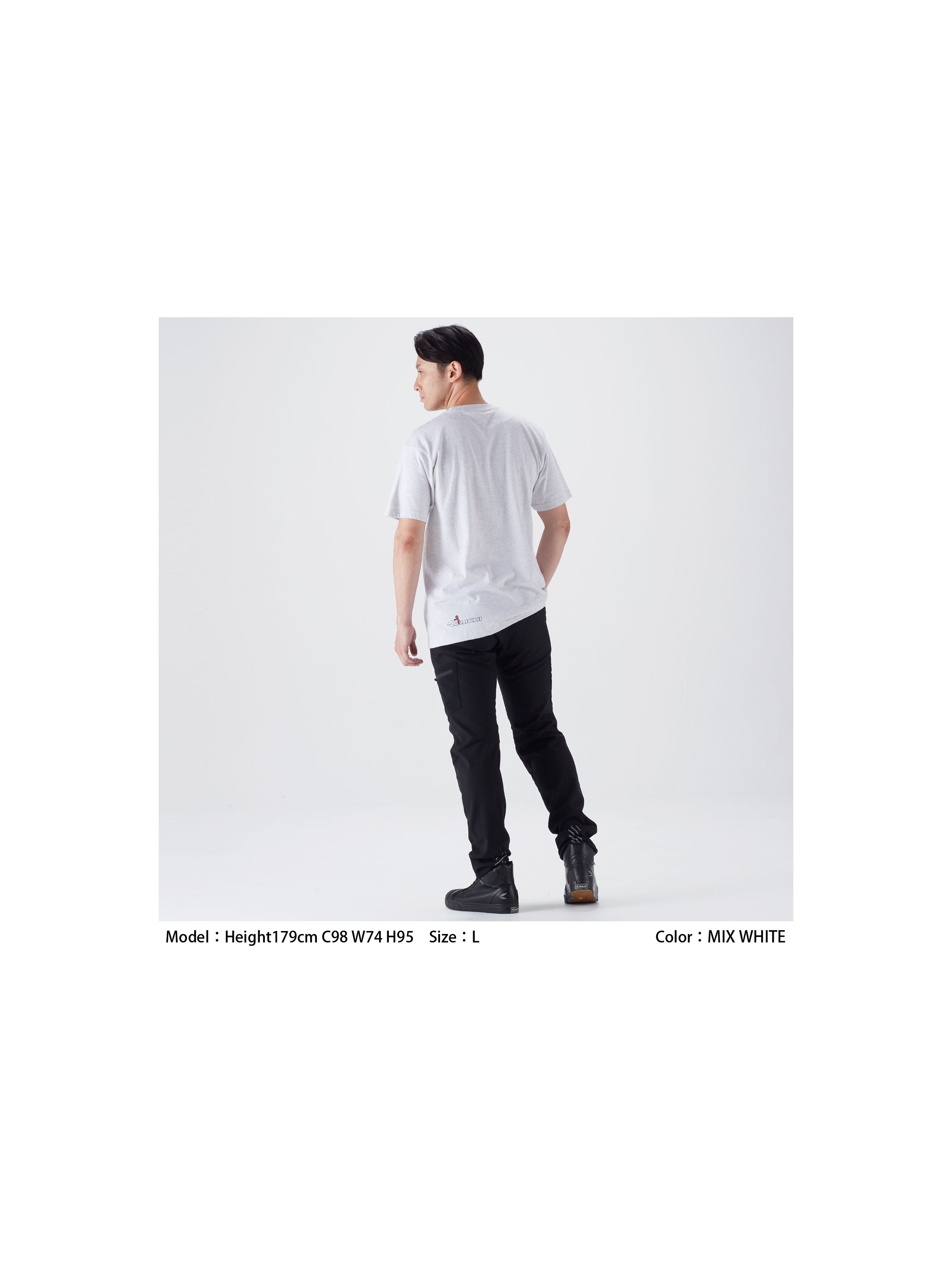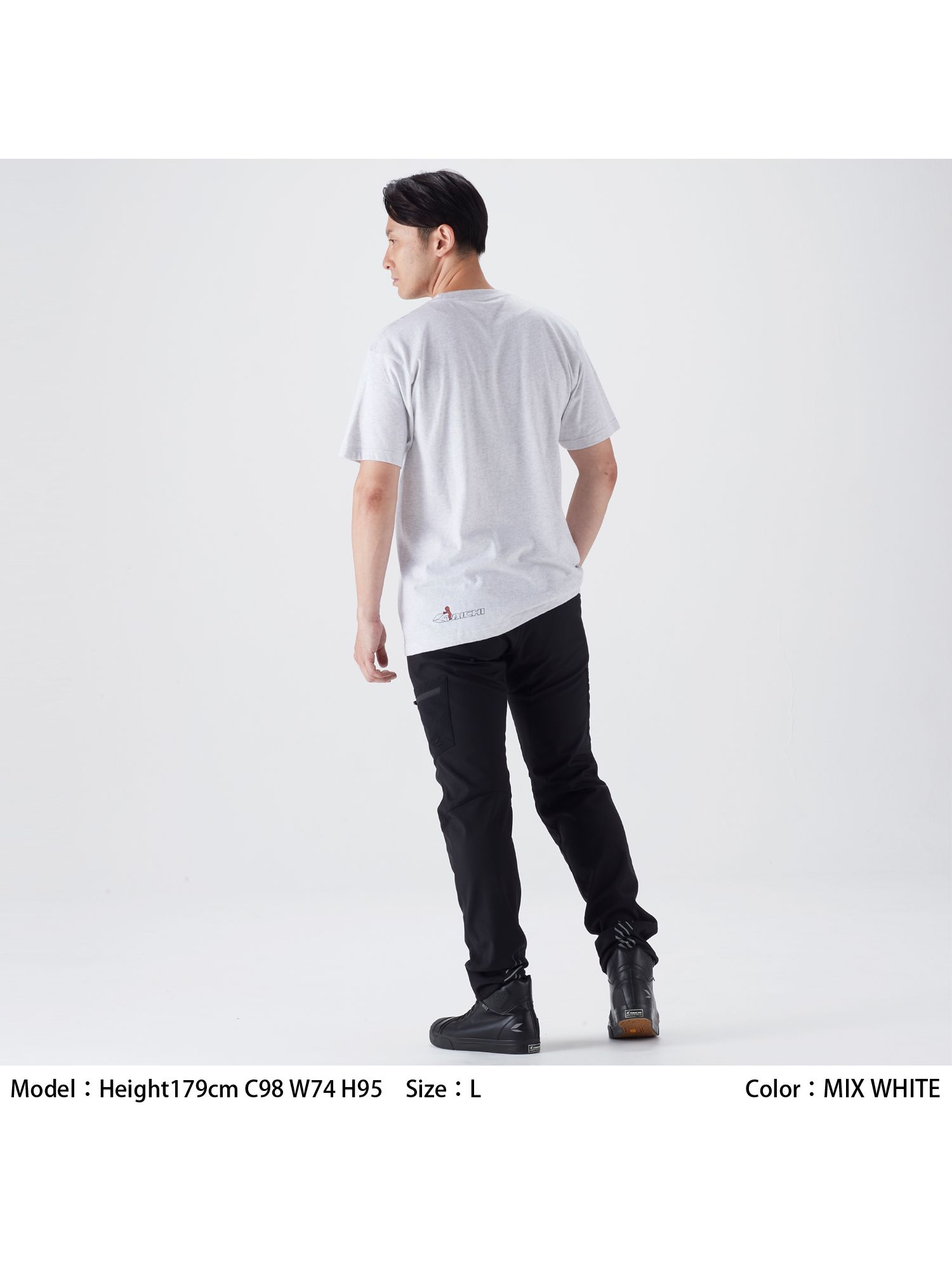ベースのTシャツは5.6オンスのやや肉厚の生地感で、全体をスタイリッシュに仕上げたシルエット。