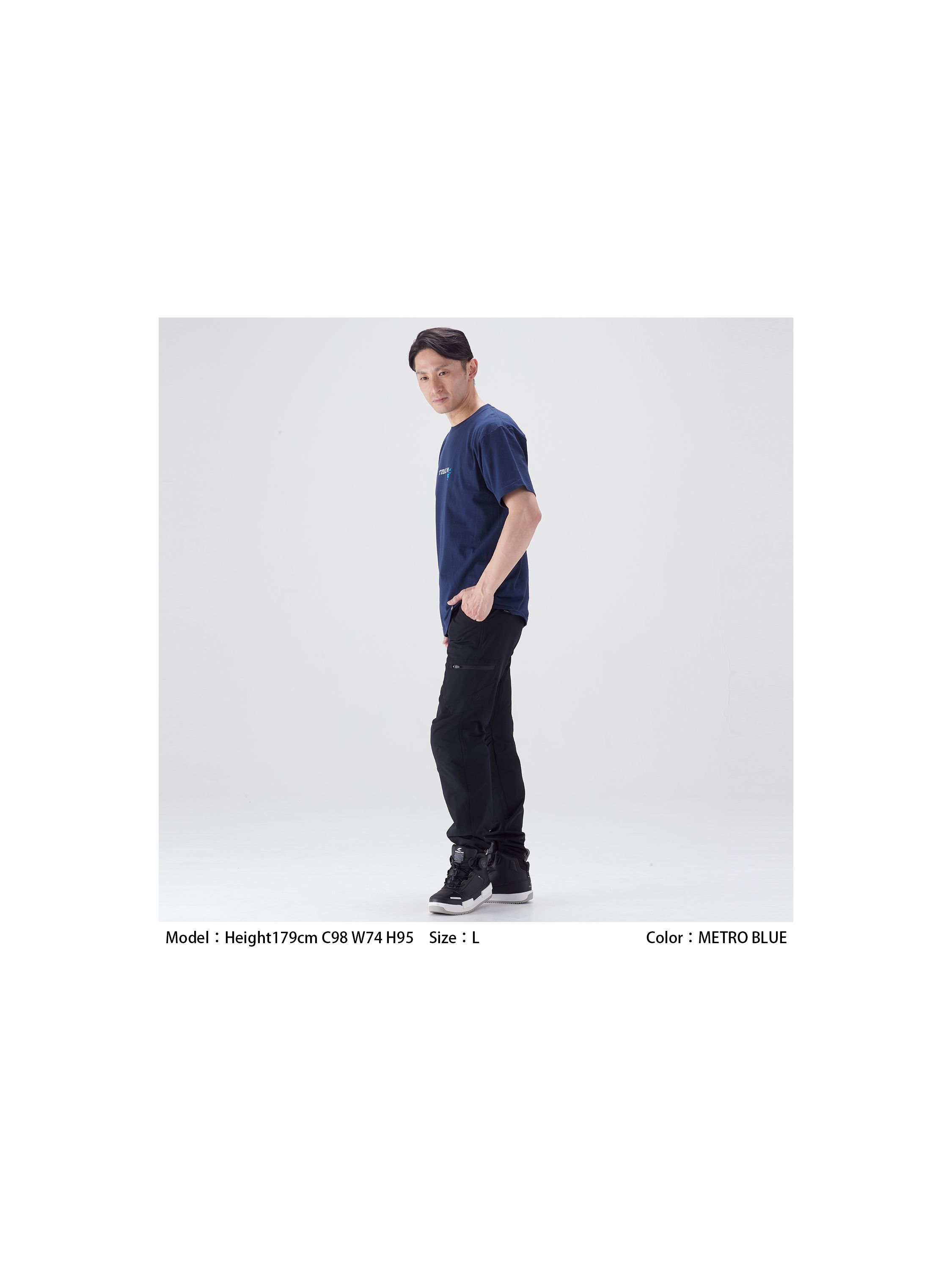 ベースのTシャツは5.6オンスのやや肉厚の生地感で、全体をスタイリッシュに仕上げたシルエット。