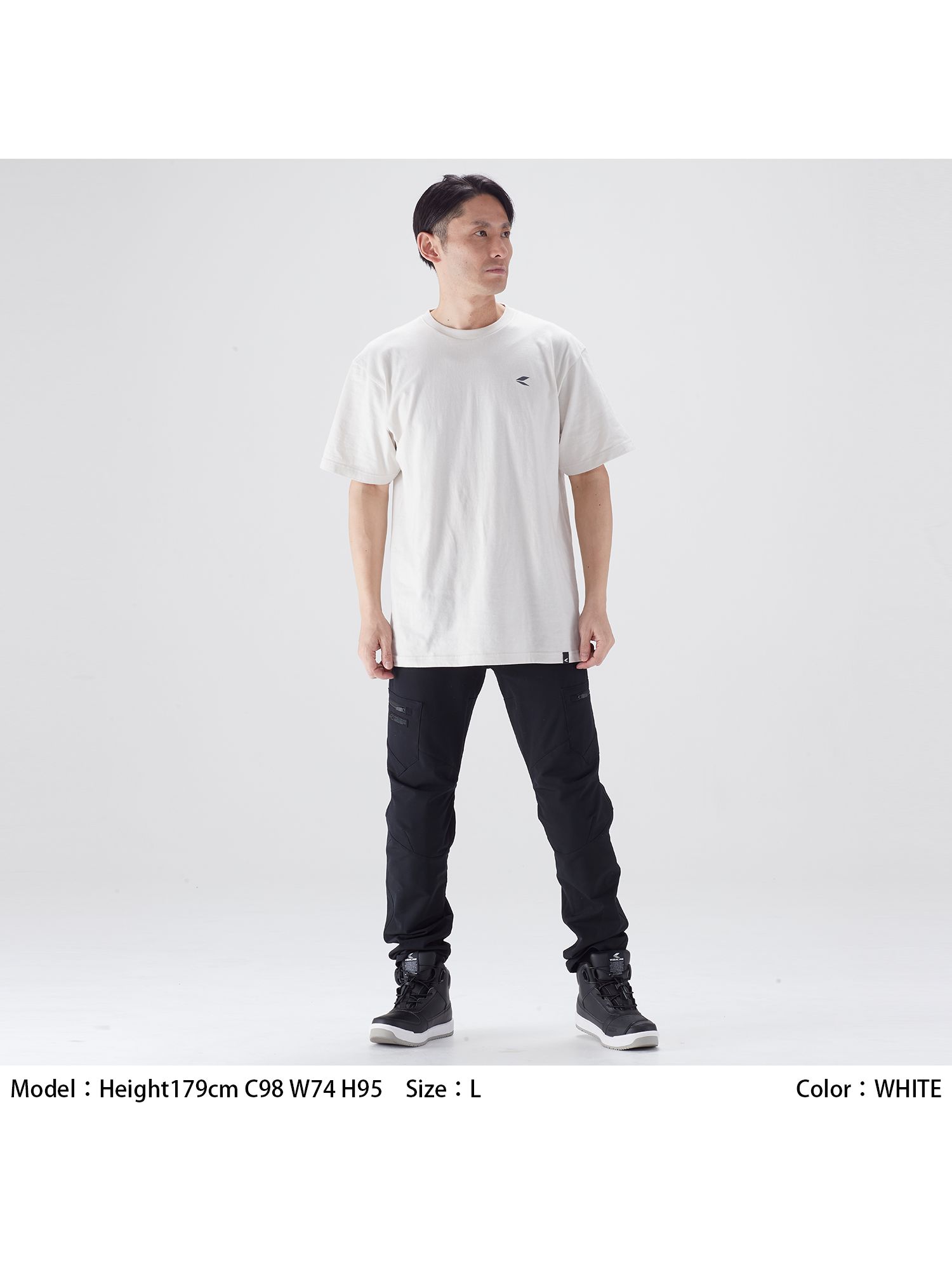 ベースのTシャツは5.6オンスのやや肉厚の生地感で、全体をスタイリッシュに仕上げたシルエット。