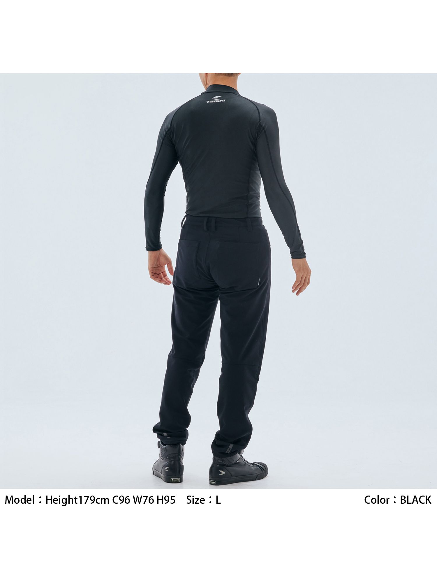 すばやく汗を拡散させ、さらに走行風を受けることにより気化熱冷却を促し、真夏のライディングでも快適にご着用いただけます。