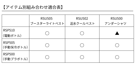 ・RSU505 | リキッドウインド ブースター ライトベスト、またはRSU502 | リキッドウインド送水クールベスト
