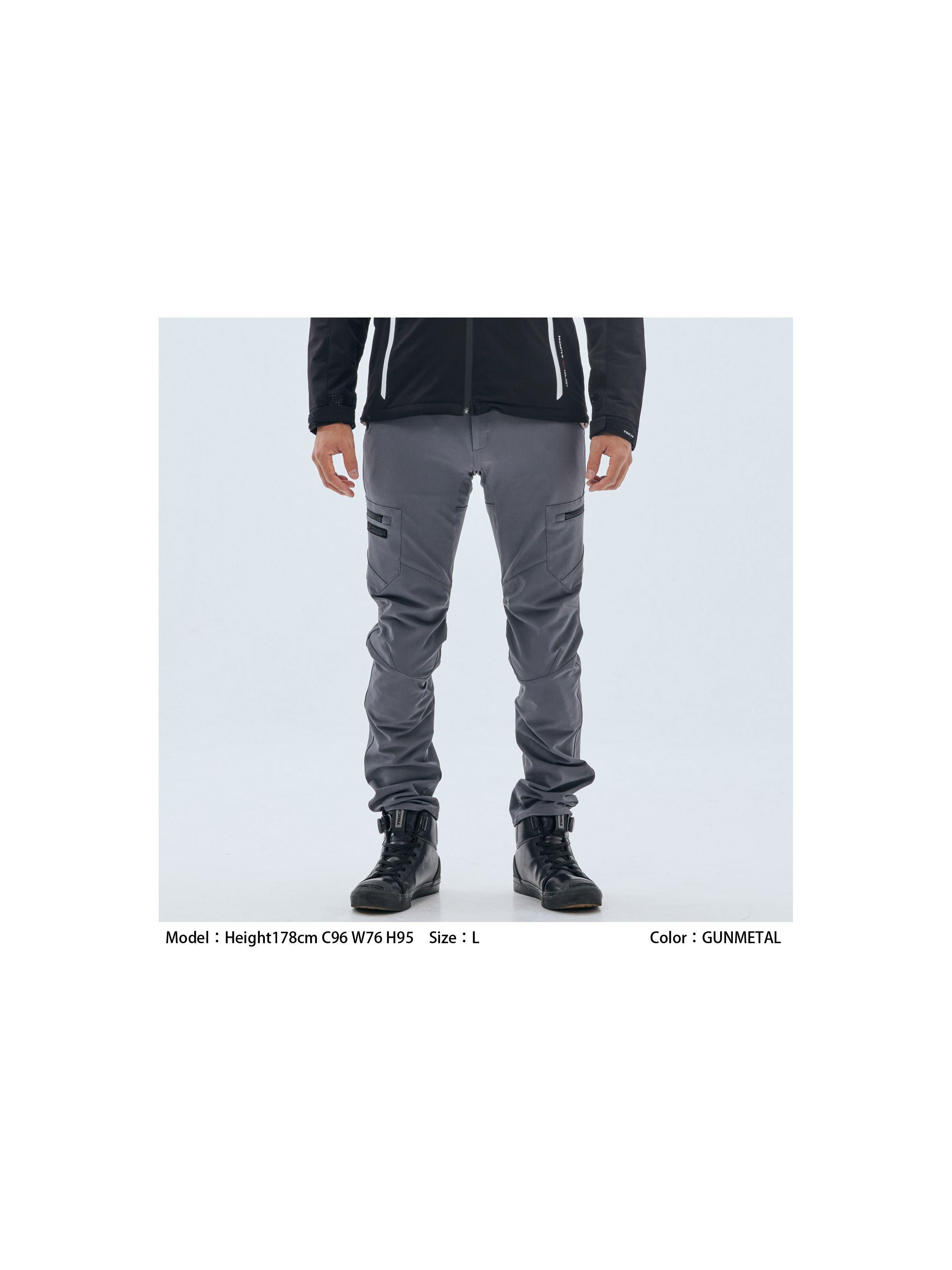 Lightweight and ventilated soft type CE Level 2 protectors are equipped on knee. Foam pad is equipped on waist and can be upgraded to optional CE approved protector.
