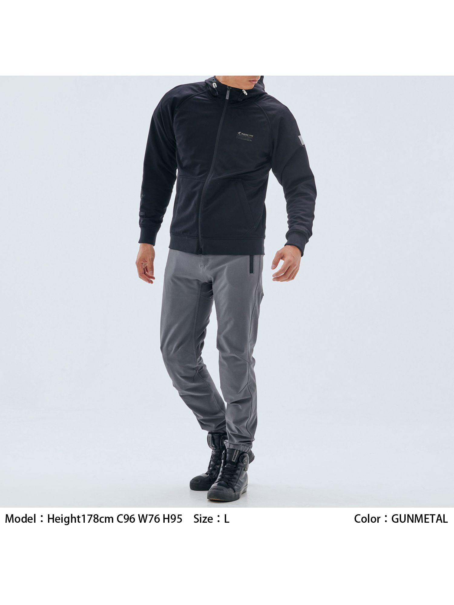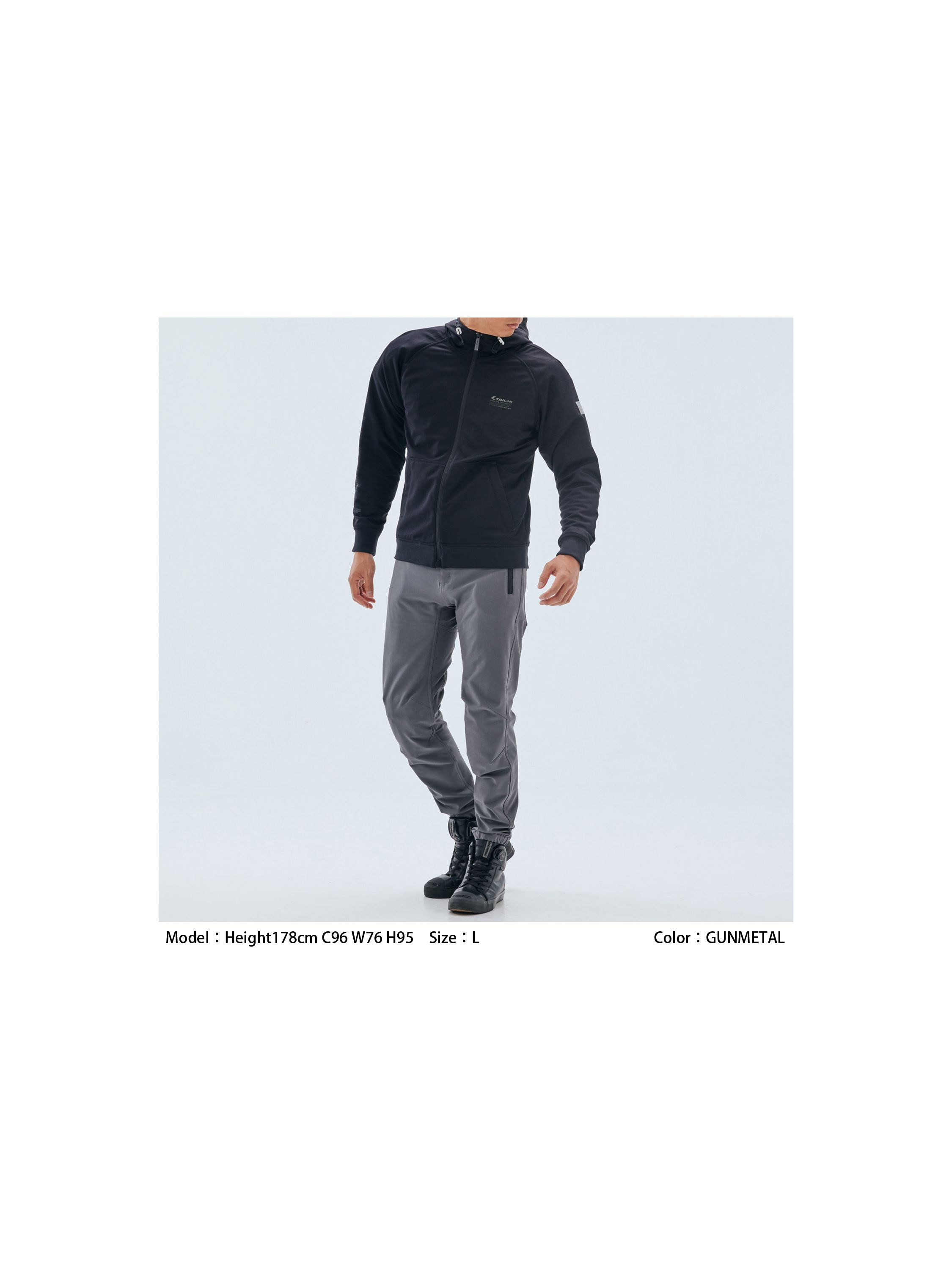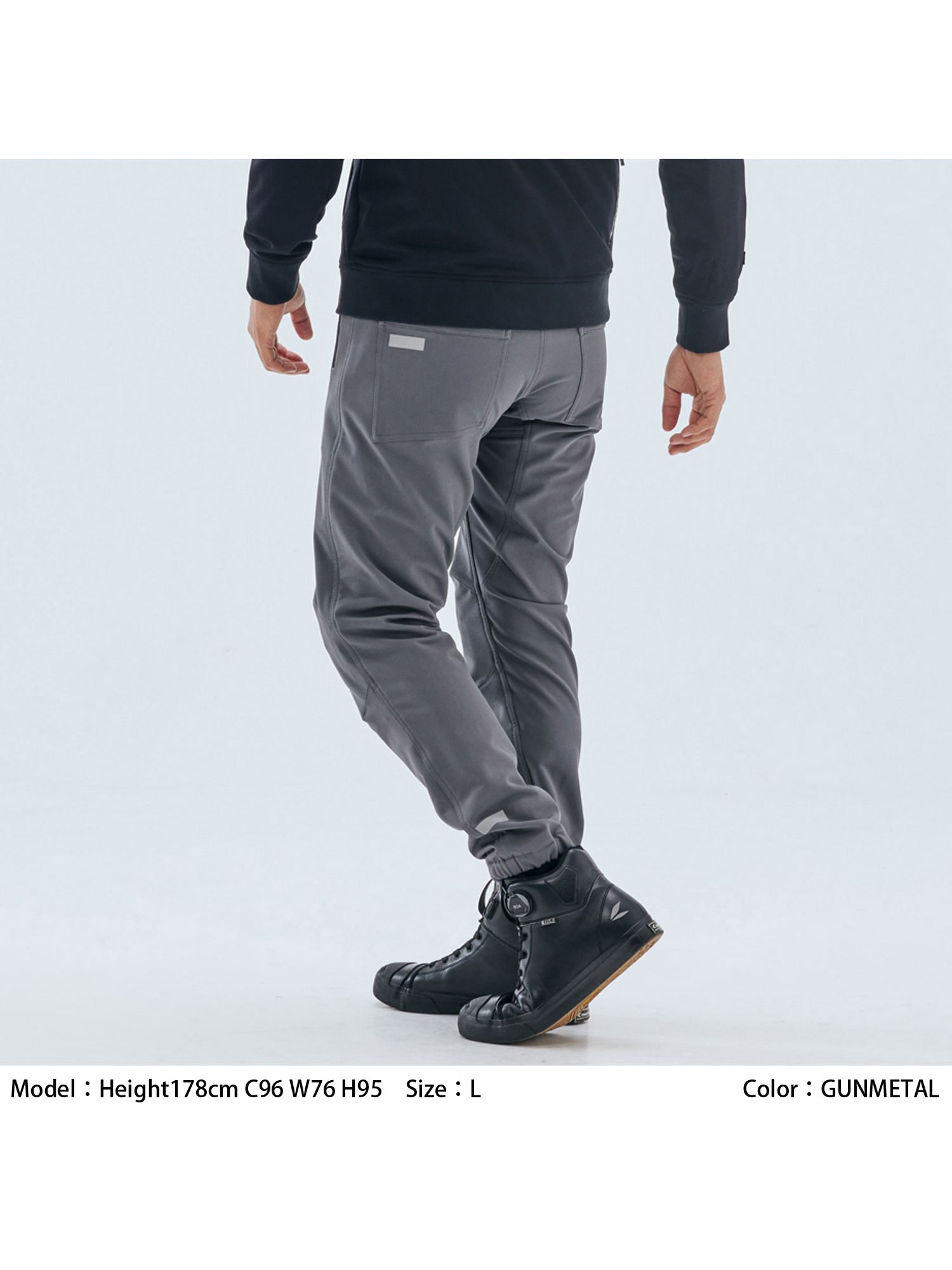 表面に撥水加工を施した、高強度エアスルーストレッチ生地を採用し、 ストリートスタイルに合わせやすいジョガーパンツをライディング仕様に。