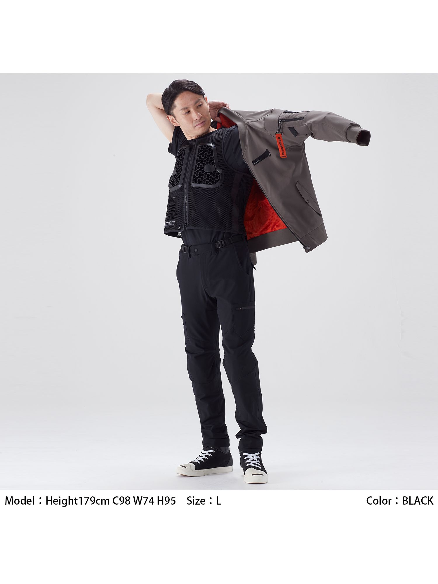 プロテクターのないジャケットやお手持ちのアウターの下に着用することで、手軽に胸・背中の保護性能を高めることが可能です。